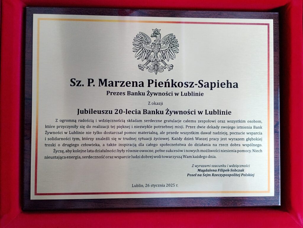NOTATKA Z JUBILEUSZU 20-lecia BANKU ŻYWNOŚCI W LUBLINIE